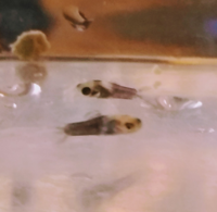 コリドラス稚魚32日目 ちびっ子の二匹がブラインシュリンプをモリモリ食べる